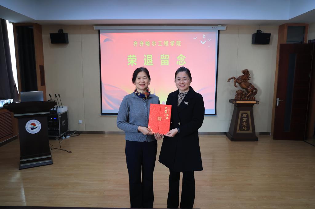 仪式上,白雪代表全校师生,向荣退同志致以崇高敬意与衷心感谢,并郑重将荣誉退休证书和精美纪念品递交到他们手中,感谢他们几十年来在各自的岗位上辛勤耕耘,以春风化雨的育人情怀和严谨务实的工作作风为学校的教学、科研、管理等工作作出的突出贡献。
