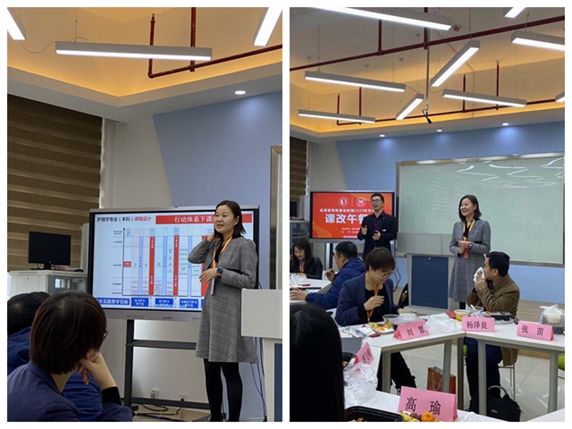 在12日中午“课改午餐会”上,张苗老师担任主持,并作课程汇报交流,邵奇、钟美慧参加午餐会课程交流,与参加午餐会的30余名各院校教师深入交流课程改革经验。