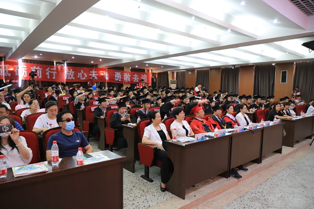 又一年,丁香花开;又一年,桃李芬芳。7月3日上午,学校2021届毕业生毕业典礼暨学位授予仪式在图书馆601报告厅隆重举行,共同庆祝1258名本科学生、196名专科学生顺利毕业。学校领导、学位评定委员会全体成员、各系(部)领导、教师代表、校友代表、毕业班辅导员及2021届毕业生和家长代表参加了典礼。本次典礼采用线下和线上抖音直播相结合的方式举行,近万名家长、校友、师生在线参会。伴随着学生们带来的歌曲闪唱《春暖花开》,毕业典礼拉开了序幕。