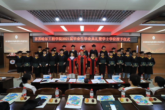 院长曹然彬宣读了《关于表彰2021年“优秀毕业生”的决定》,机电工程系车辆工程专业李友朵等71名学生被授予2021年“优秀毕业生”荣誉称号。工会主席、总会计师姜岩与副院长白雪为“优秀毕业生”颁发荣誉证书。