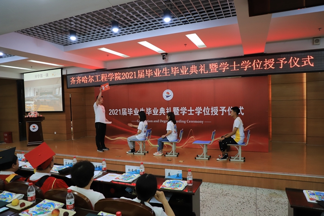 机电工程系带来的情景剧《青春匆匆流》,带领全体毕业生回顾了在校期间的校园生活,那些共同经历过的职业前瞻教育、专业实习、军训、社会实践等活动像电影一样在大家头脑中一一浮现,引起了毕业生的共鸣。