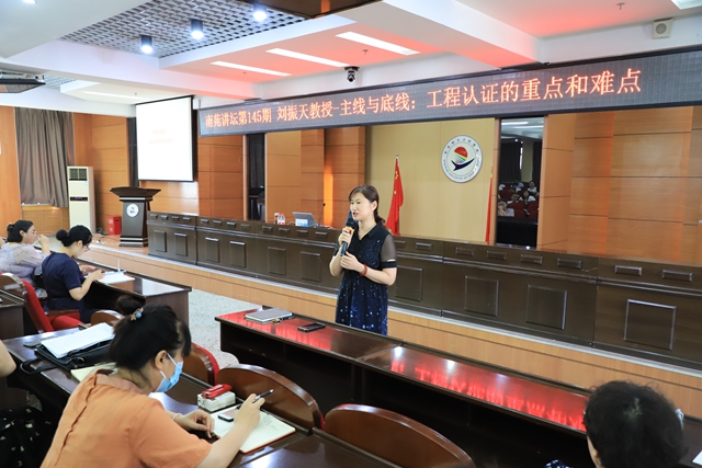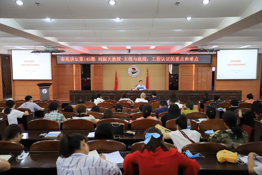 调研期间,学校邀请厦门大学教育研究院党委书记刘振天教授作题为《主线与底线:工程认证的重点和难点》专题报告,教务处、全质办、教发中心、学发中心、思政部、基础部主要领导及各系主任、副主任、全体教师聆听了刘教授的报告。