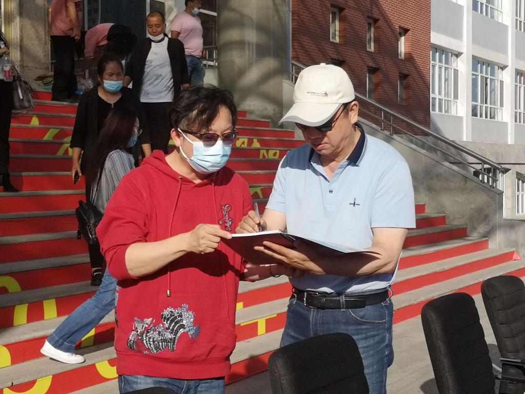 仪式结束时,新生家长请曹勇安理事长题字留念。