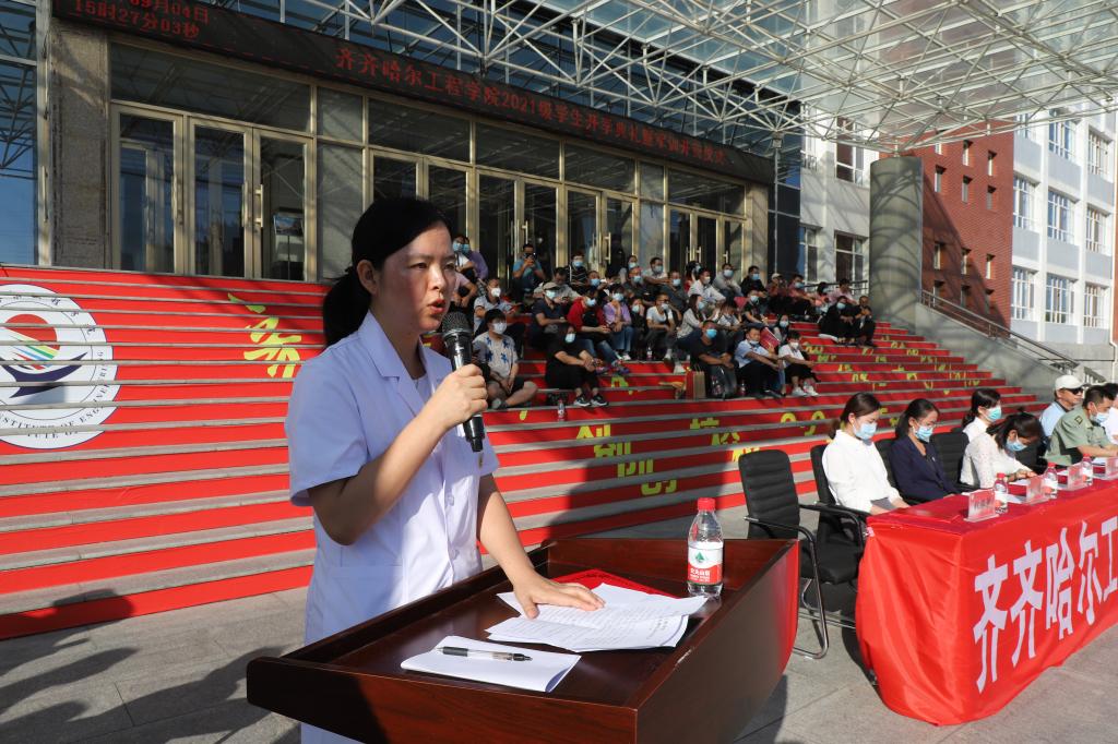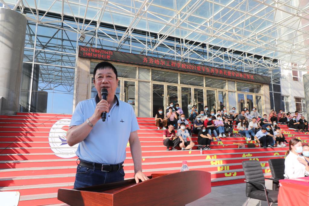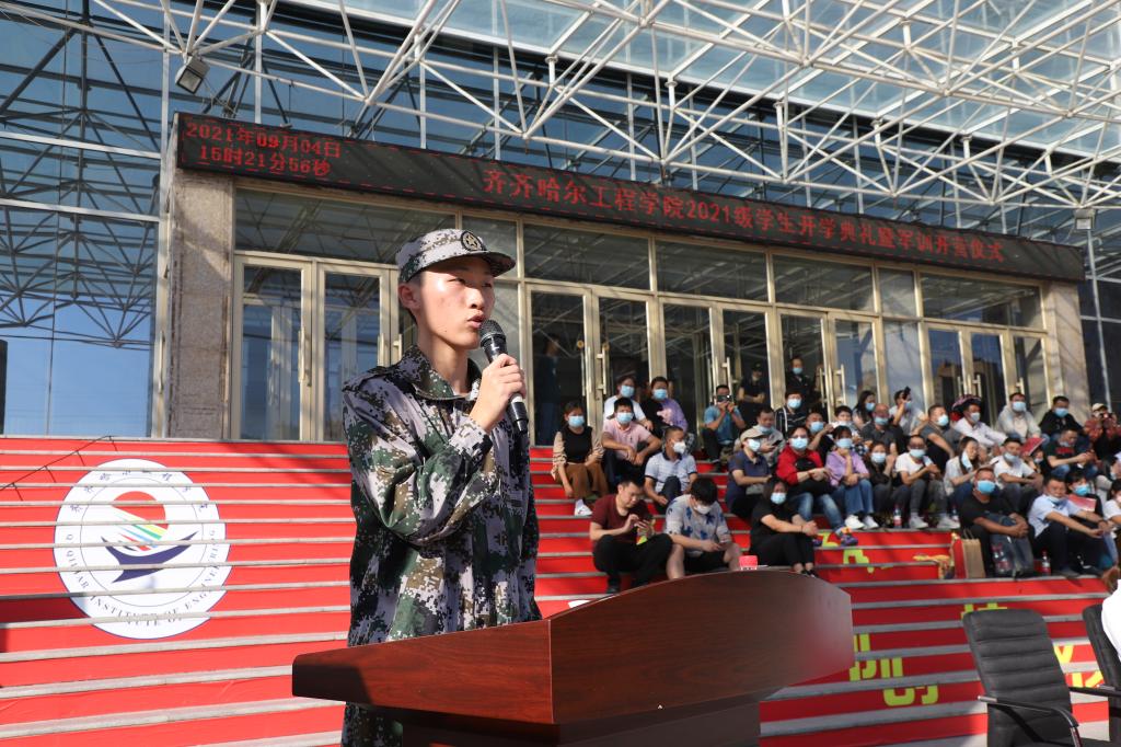 龙沙区武装部政委讲话,指出军训的目的,除了练技术,练体力,提高军事素质外,更重要的是增强组织纪律性,锻炼坚强意志,树立献身精神,培养良好的军人作风,以及军人那种坚忍不拔的毅力和迎着困难勇往直前的拼搏精神。相信同学们面对紧张、严格的训练,能够树立勇于磨练、敢于摔打的信心和勇气,顺利地过好艰苦关、紧张关,以实际行动交出一份合格的答卷。