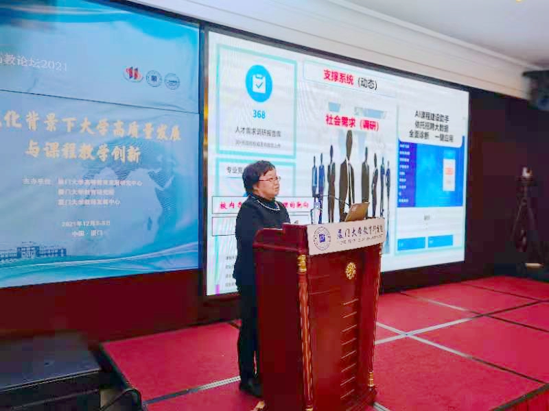 潘宇教授在论坛上做了《AI赋能高校课程建设新模态》,从信息技术视角,以学校牵头研发的“课程通”智慧系统为例,阐释课程建设的根本原理及技术驱动课改的方向与方法。两位教授的报告理论联系实际,语言生动,案例丰富,理念前瞻且具有操作性,线上线下反响热烈。