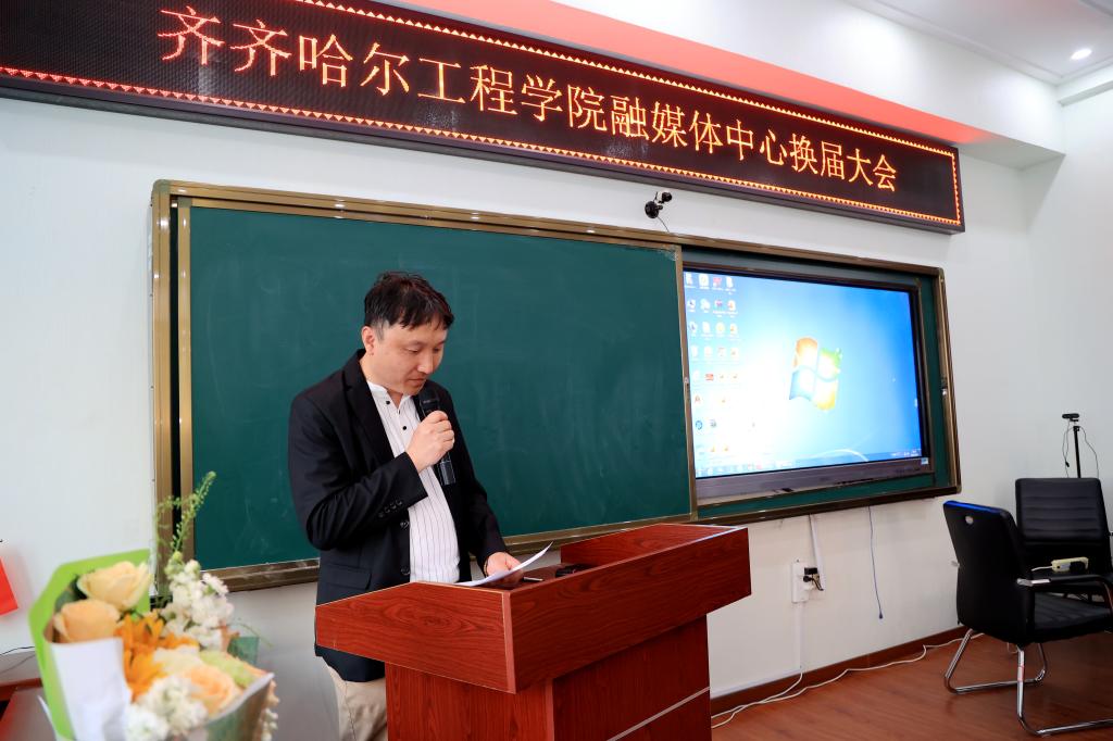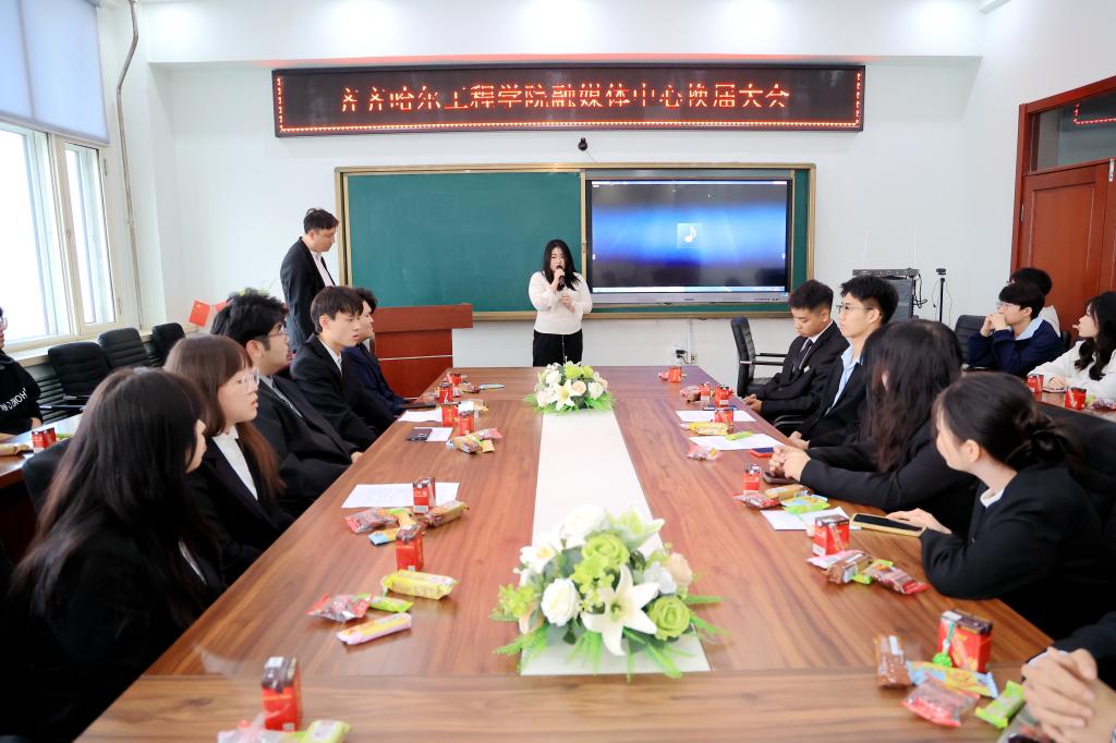 张苗为新当选的融媒体中心学生干部颁发聘书,并作总结发言。