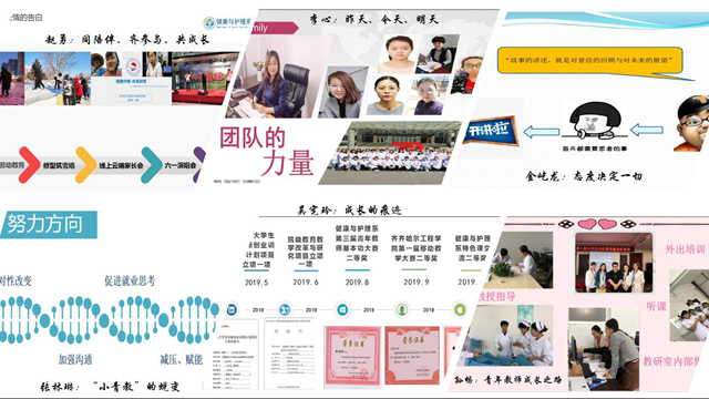 故事分享比赛中,实验中心金屹龙老师做《态度决定成败》故事分享,健管教研室吴宪玲老师做《成长的痕迹》故事分享,辅导员办公室赵勇老师做《同陪伴,齐参与,共成长》故事分享、基础医学教研室张林琳老师做《“小青椒”的蜕变》故事分享、系办公室李心老师做《昨天、今天、明天》故事分享、护理教研室孙畅老师做《年轻教师的成长之路》故事分享。