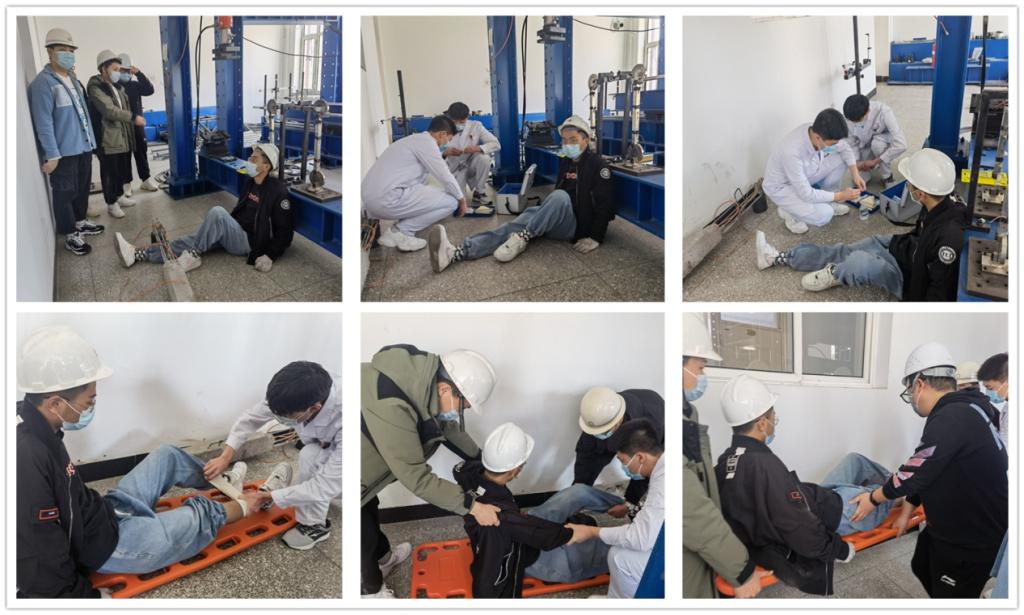 4月15日下午,建筑工程系与健康与护理系于三号教学区结构力学实验室联合开展了实验室安全应急演练。健康与护理系实验中心主任张晓波,校卫生所医生信萍,建筑工程系实验技术人员李盼盼、李微、国贺阳,以及技能学长、土木工程专业10多名学生共同参加演练。