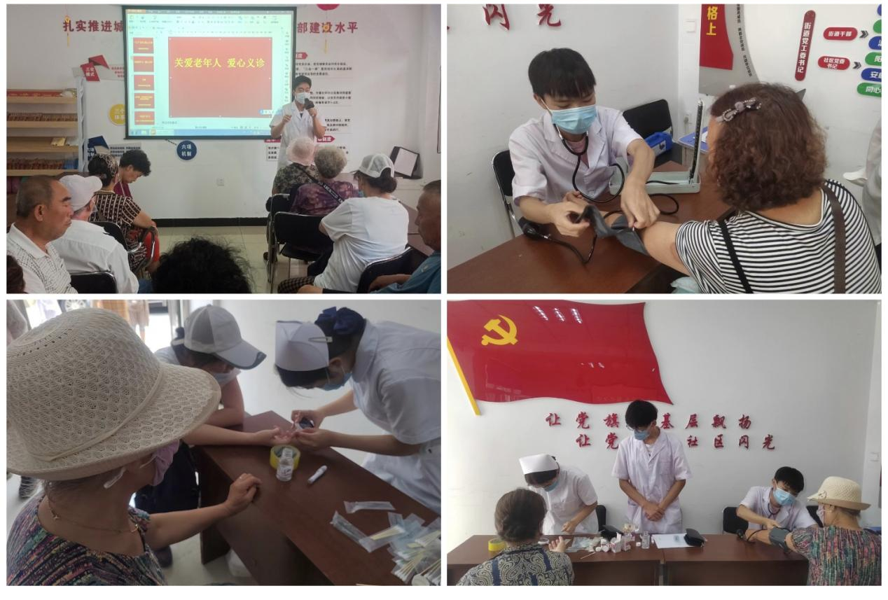 首先,健康与护理系学生代表曲彬为社区老人进行健康宣讲,讲解预防高血压和糖尿病的注意事项,包括从饮食、运动及日常生活习惯等方面。随后,由学生党员和积极分子为社区老人测量血压及血糖,根据测量结果给予老人一些有关饮食及运动方面的建议,并做好各项体征的监控。