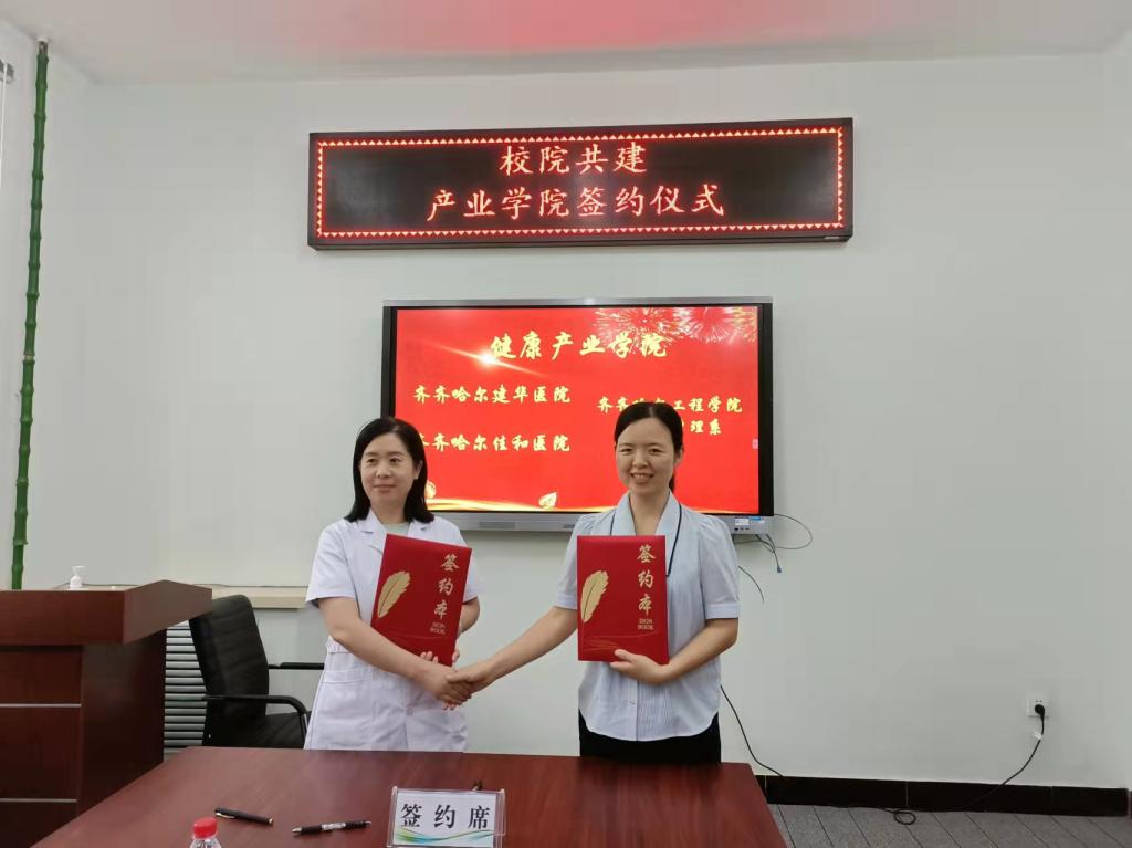 7月29日下午,齐齐哈尔建华医院副院长冯瑞芝、护理部主任张艳,齐齐哈尔佳和医院法人代表李晔、总经理赵长青一行来校,与健康与护理系举行共建“健康产业学院”签约仪式。健康与护理系负责人郭玲玲、教学副主任张苗、系部教学指导专家杨立群、健康服务与管理专业带头人杜红梅,以及相关专业负责人参加。