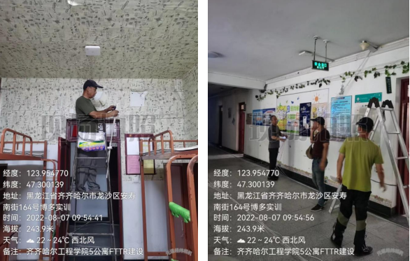 目前完成学生一至九公寓和三味餐厅超过600台AP、80台分光器、40台光交换机的安装,覆盖房间超过1100间。