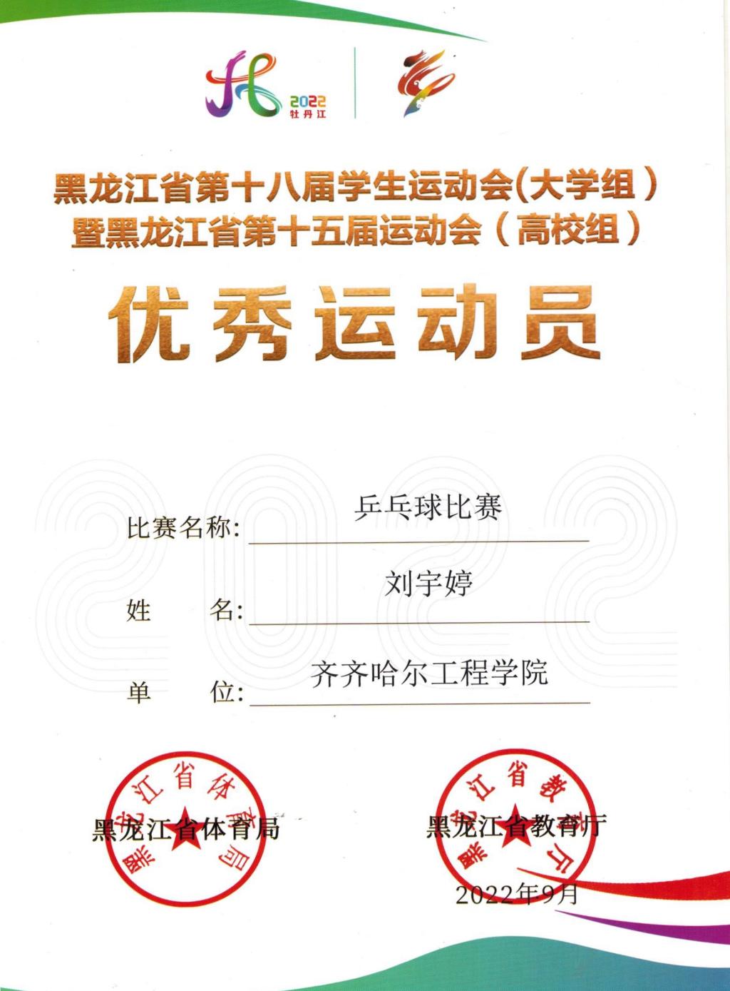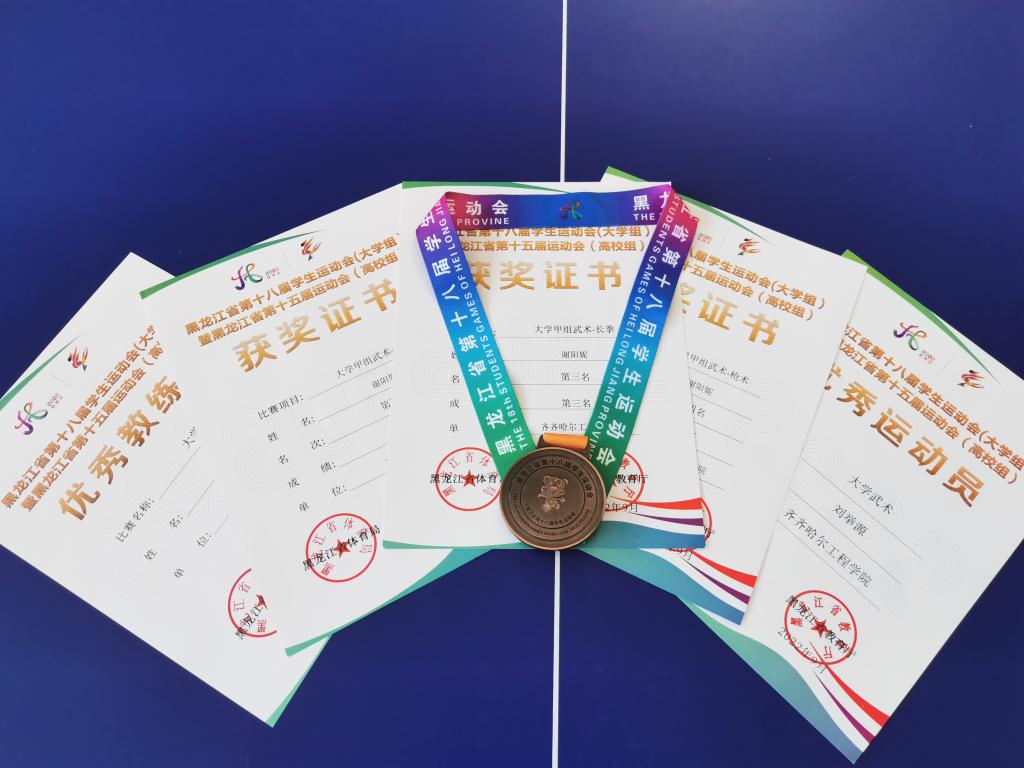 beat365武术队的谢阳妮同学获得女子长拳铜牌、女子剑术第四名和女子枪术第四名的好成绩;乒乓球队的刘宇婷、武术队的刘举源同学荣获优秀运动员称号;两个项目的教练员韩淑梅和于壮老师均获优秀教练员称号。
