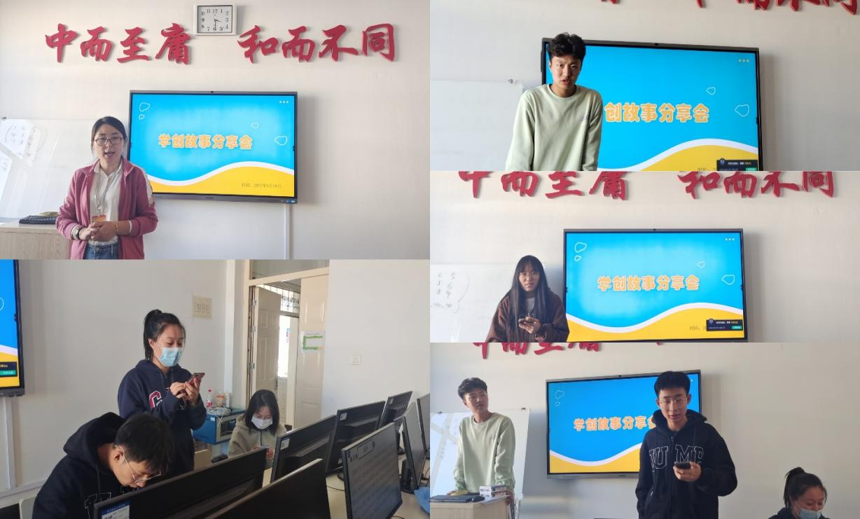 9月19日下午, 互联网金融专业在三号教学区1302实训室开展“学创故事会”活动。该专业2021级学生参加,王文晶老师主持。