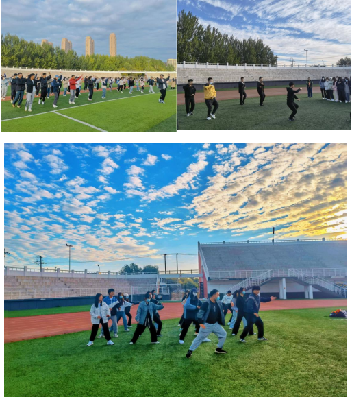 秋日明媚的晨光照耀着体育场的草地,健管专业三个年级的同学们早早来到了体育场,满怀期待与热情,等待着早操的开始。