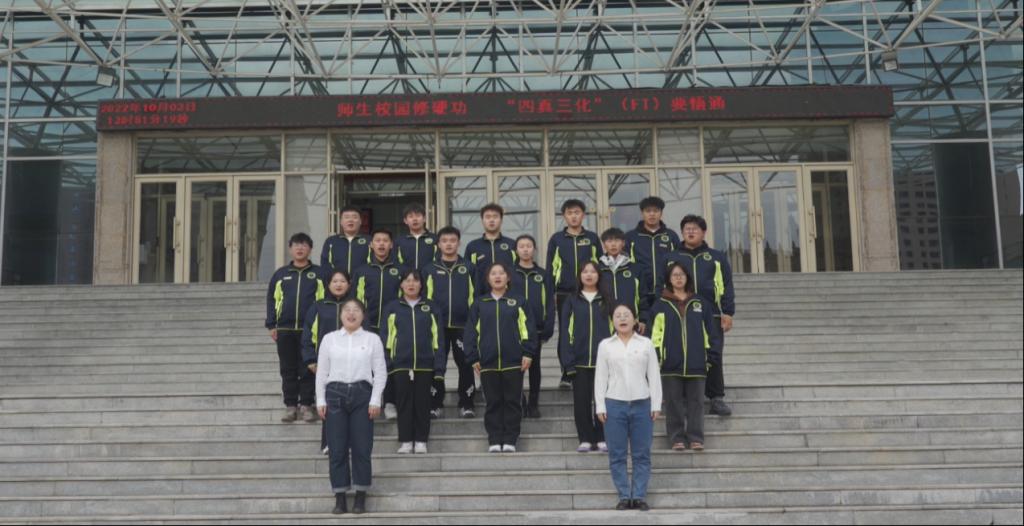 思政教学部党支部青年教师陈阳、赵立莹带领学生在学校图书馆门前合唱《我和我的祖国》,用音乐表达对伟大祖国最深情的祝福,用嘹亮的歌声表达喜迎党的二十大的激动心情。