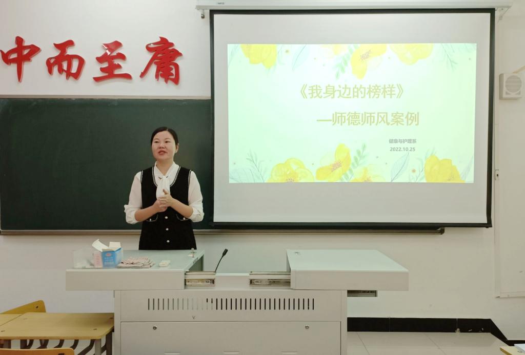 10月25日下午,健康与护理系在一号教学区1213教室召开“我身边的榜样——健康与护理系师德师风”分享会。系部全体教师参加,于晶老师主持。
