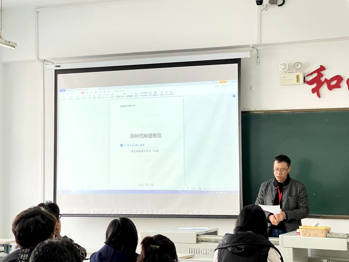 谢伟东老师领学了《新时代高校教师职业行为十项准则》为主的师德师风系列文件,明确新时代教师职业规范,强化师德红线与底线意识;强调高校教师要严格要求自我,自觉遵守学校的规章制度和有关规定,要具有高度的责任感,努力做好教书育人工作,不断提升自我。