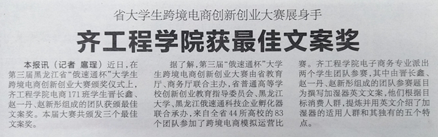 鹤城晚报:省大学生跨境电商创新创业大赛显身手 齐工程学院获最佳文案奖