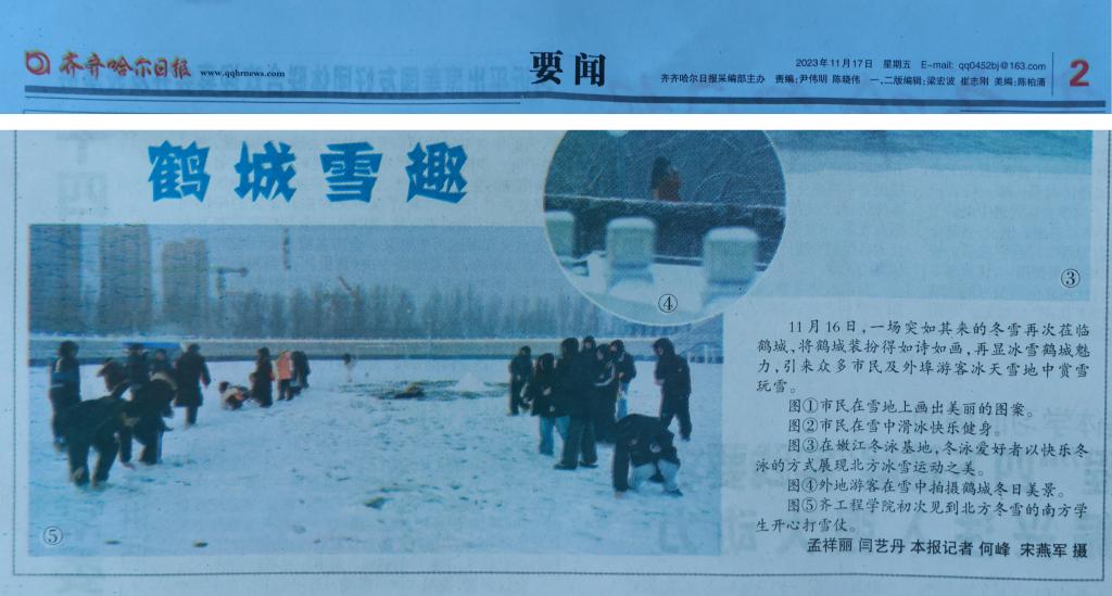 齐齐哈尔日报:齐工程学院初次见到北方冬雪的南方学生开心打雪仗