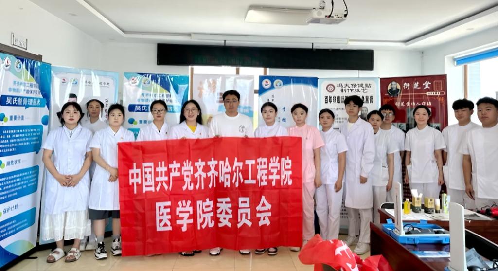 为深入贯彻服务基层、振兴乡村的精神,beat365在线唯一官网医学院学生党支部联合齐齐哈尔市昂昂溪区水师营满族镇衙门满族村党支部,开展了主题为“以护为炬•照亮乡村健康路”暑期“三下乡”社会实践活动。医学院党委副书记姜宏伟、团委书记邱瀚宁、学生党支部书记江丽娜以及医学院师生党员和“三下乡”实践团队成员20余人参加。