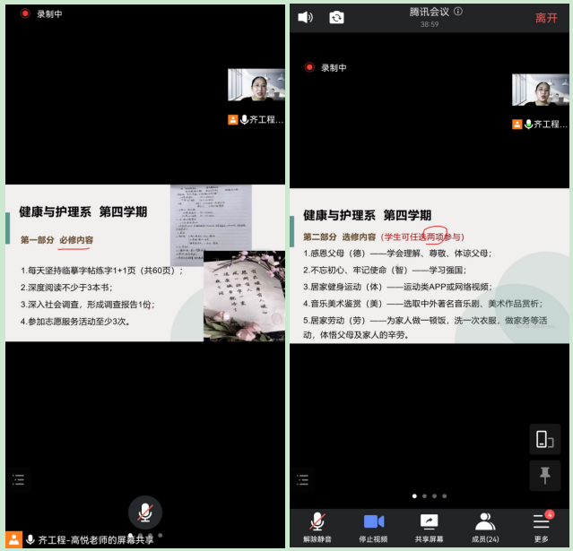 1月15日下午,健康与护理系的吴宪玲老师召开线上第四学期总结分享会,健康服务与管理专业HLX—225—233组全体同学参加。 首先,吴宪玲老师对小组成员本周的学习情况进行总结,随后,由各队长推荐优秀组员,陈...