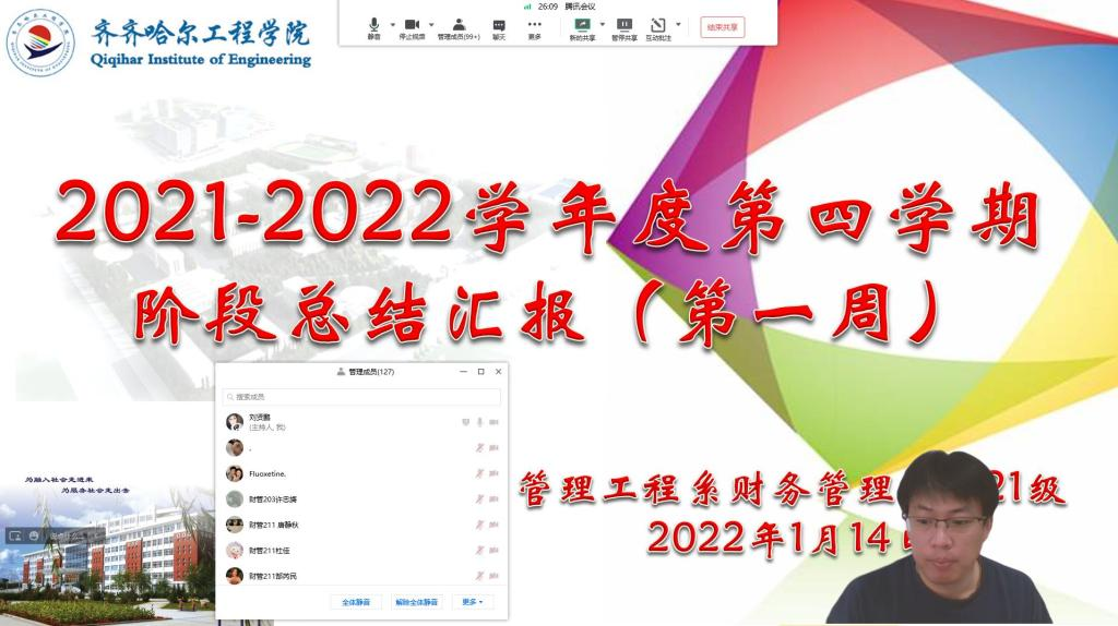 1月14日,学校管理工程系组织各个班级、专业召开了2021-2022学年度第四学期阶段总结汇报会,全体生涯导师、新入职辅导员参加,系学生工作副主任刘贤鹏主持。 汇报会上,各学生团队组长进行了第一周的阶段汇报,学生...