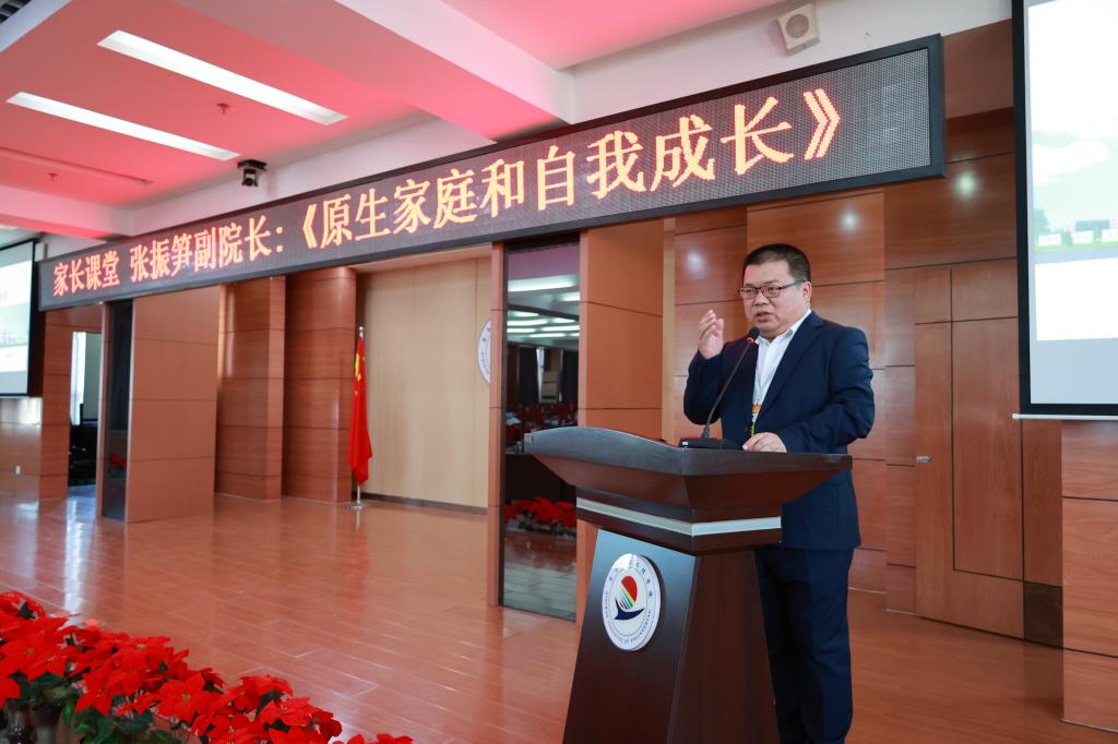 8月27日下午,继2022级新生家长会后,学校《家长课堂》活动开启,张振笋副院长主讲《原生家庭与自我成长》。 “每个生命都是宏大的世界”,张副院长讲座以真实案例切入,阐述原生家庭的内涵及其深远意义,认为学生进...