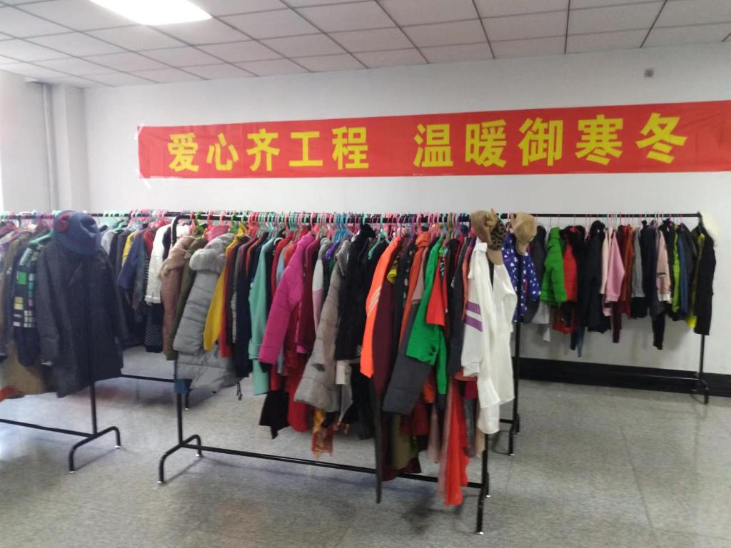 10月21日,图书馆四楼货梯门口处的一块“温暖驿站”指示牌和“爱心齐工程,温暖御寒冬”横幅格外醒目。七排衣架上,200多件羽绒服、棉衣、棉裤、毛衣、棉鞋、围巾,满满地承载着学校教职工爱心,整整齐齐地挂在衣架上...